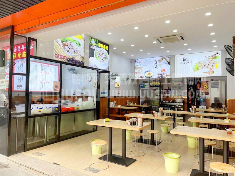 1、本店双卡铺位,开间大,招牌醒目,格局方正大气,光线很好;全新装修,共约85平方,租金便宜才9700元,经营无压力;目前经营做汤粉,24小时经营,盈利中。