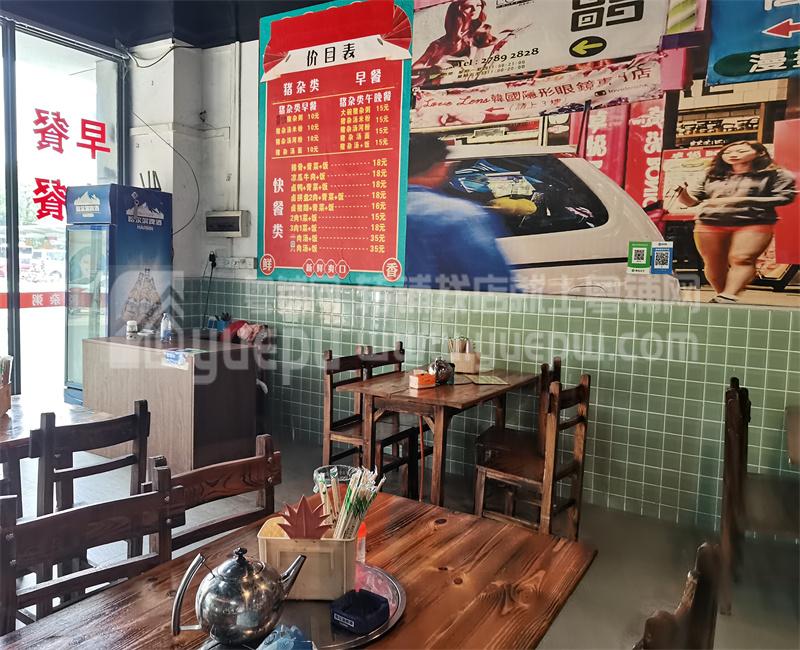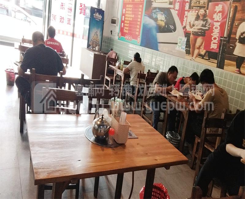 二:店铺优势:1)本店开间大,招牌醒目,一目了然;格局方正大气,本店面积80方,租金便宜才5000元/月,经营无压力。目前经营做猪脚饭,加盟品牌,每天外卖单七八十单,生意不差;
