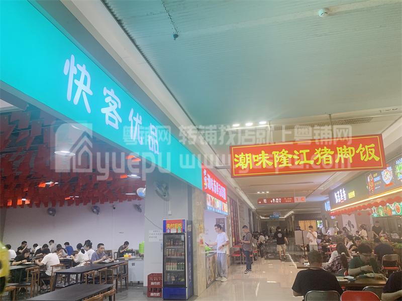 1.店铺地理位置优越,毋庸置疑。美食街进出口位置, 门头开间大,招牌广告位显眼。广场广告都可申请免费使用。