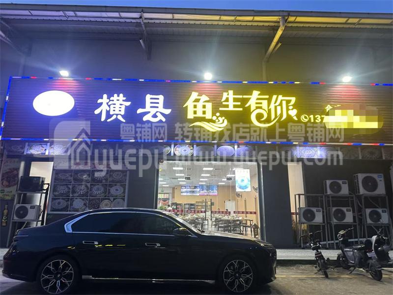 3店铺是的广西横县鱼生, 门头大气醒目显眼, 经营不受限制, 做川湘粤菜 火锅, 宵夜 潮汕砂锅粥都可以。
