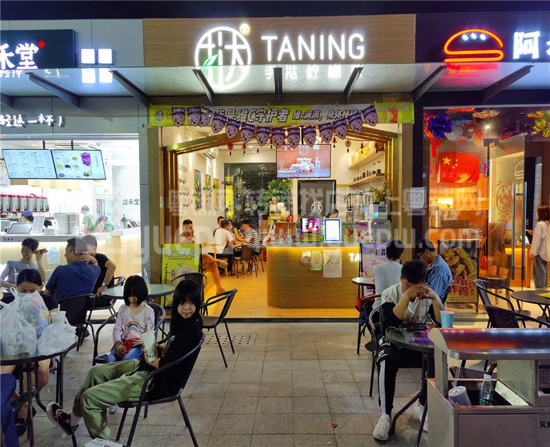 二,店情铺况:(1)本店开间大,招牌醒目,一目了然;格局很好,方正,装修精致,店内面积约40方,门口外摆台面积很大,可以摆十多张桌椅。