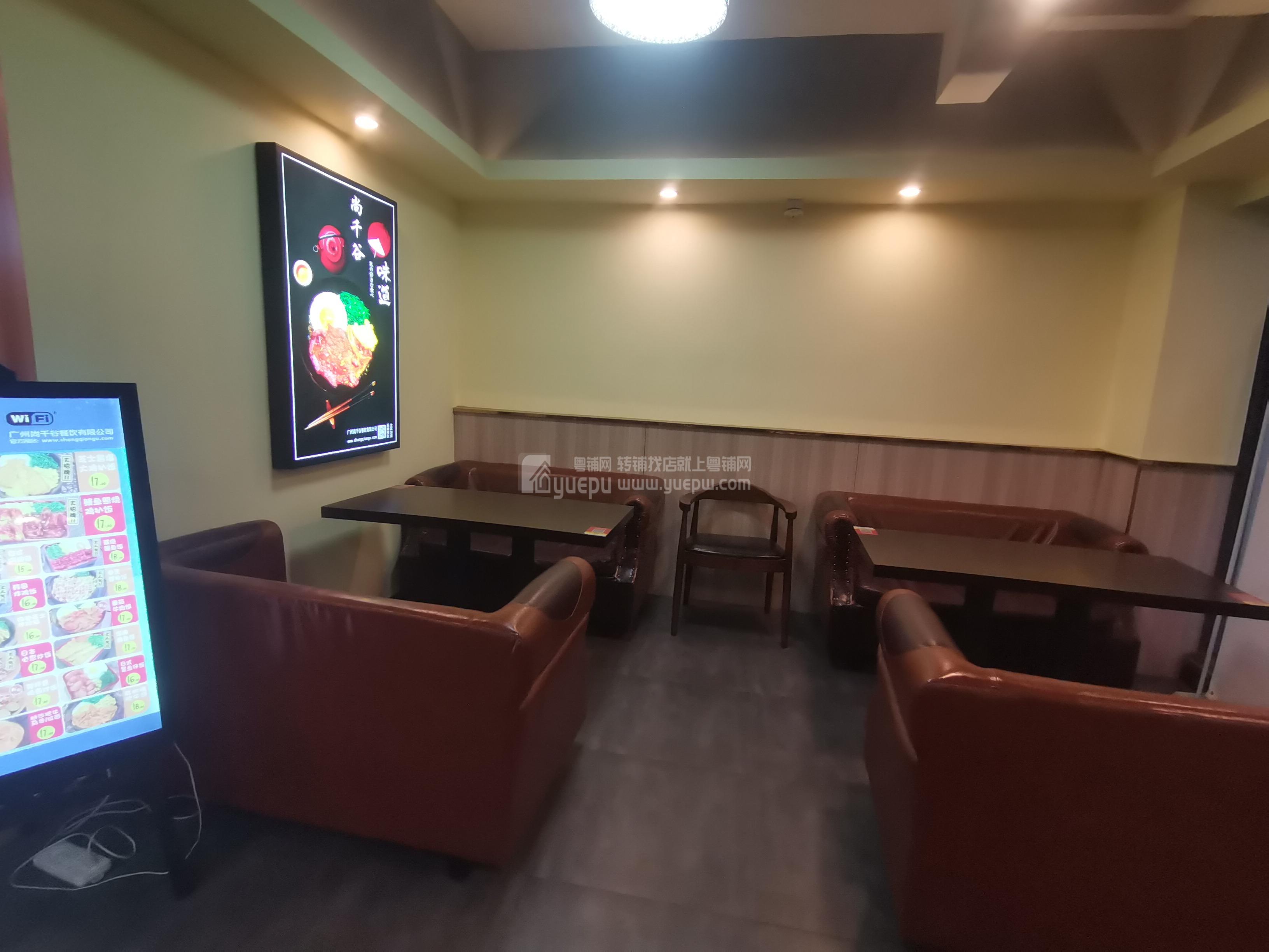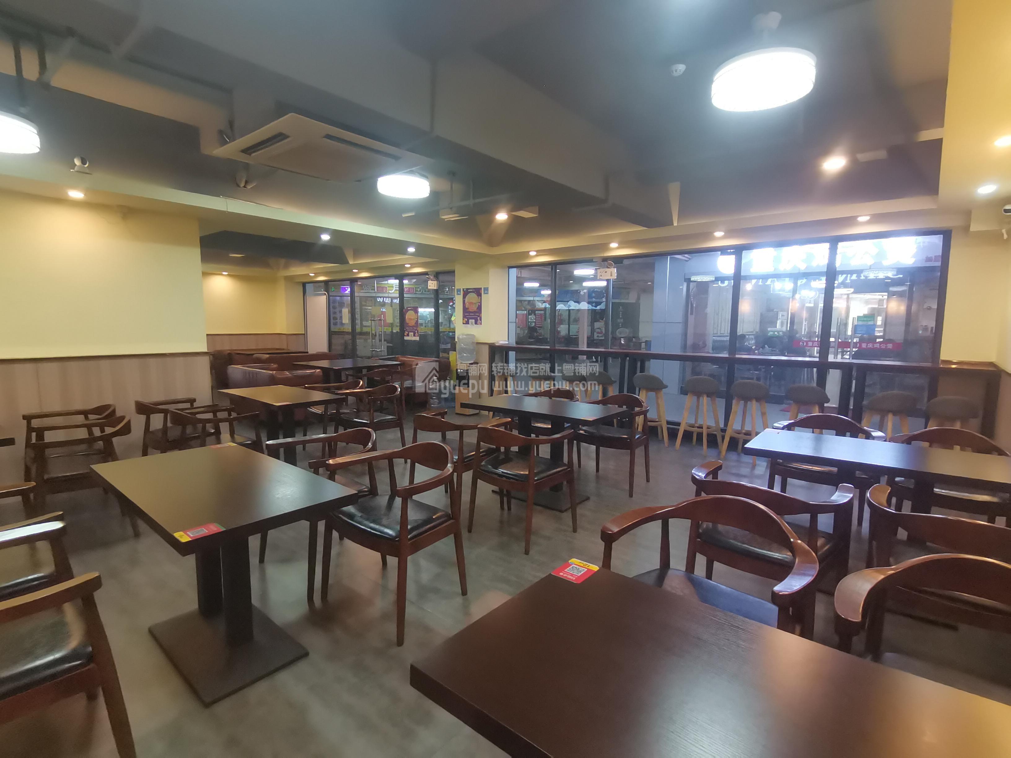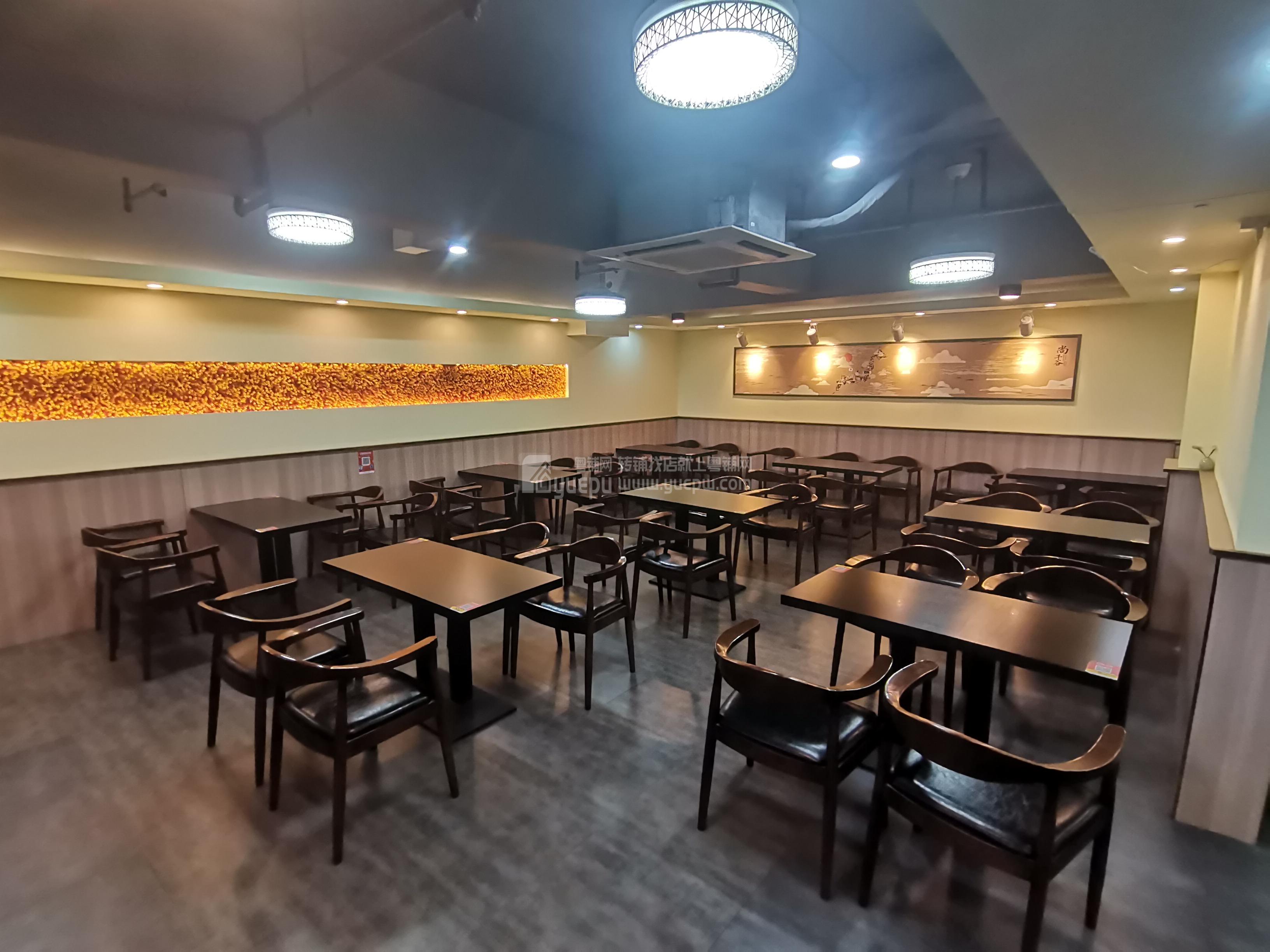 店铺位置显眼,门头大气,7字铺面,位置很好找,闹中带静,总体实用面积有100平方,合同面积146平方,租金:7300元/月,内部全新精致装修,靠墙的单人堂食区域,四人小桌,以及合并的大桌,容纳人数超过60人。