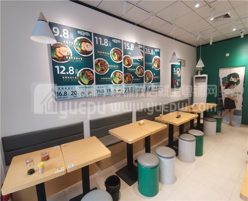 1、本店开间大,招牌醒目,格局方正大气,光线很好;精装修,共55平方,租金才4200,租金便宜无经营压力;目前主要经营做荷叶饭,自开业以来生意一直不错,老客户非常多;周边外卖市场非常大,人手充足,做不完的生意。