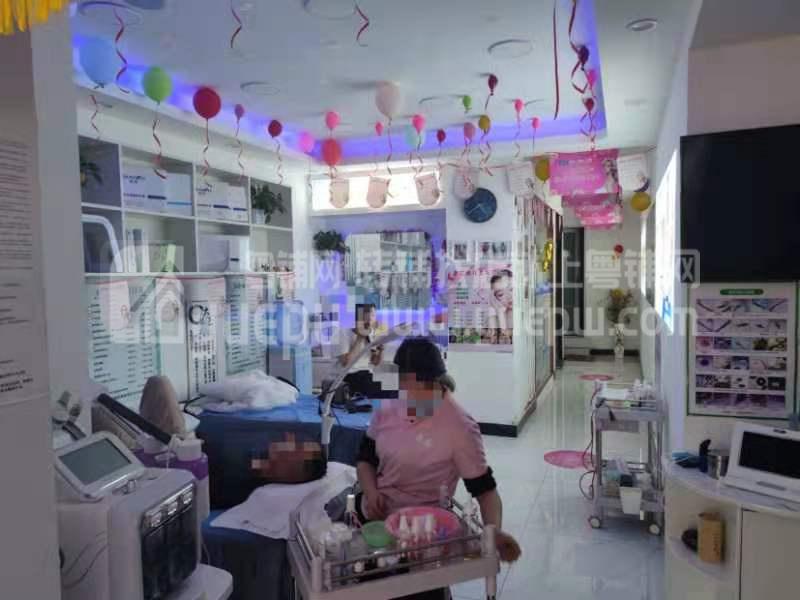 店铺详情:店铺合同3年一签,递增少,上下两层,带品牌会员,目前有300多个稳定会员,有5台空调,1楼有3张美容床,一个独立美容房,楼上有三张美容床,有独立洗手间。