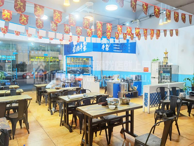 1、本店开间大,招牌醒目,格局方正大气,光线很好;精装修,面积共106平,有卫生间、仓库;门口大量的停车位,停车非常方便;租金才5300,租金便宜无经营压力;目前主要做特色牛杂煲,周边工厂多,外卖市场非常大,人手充足,做不完的生意。